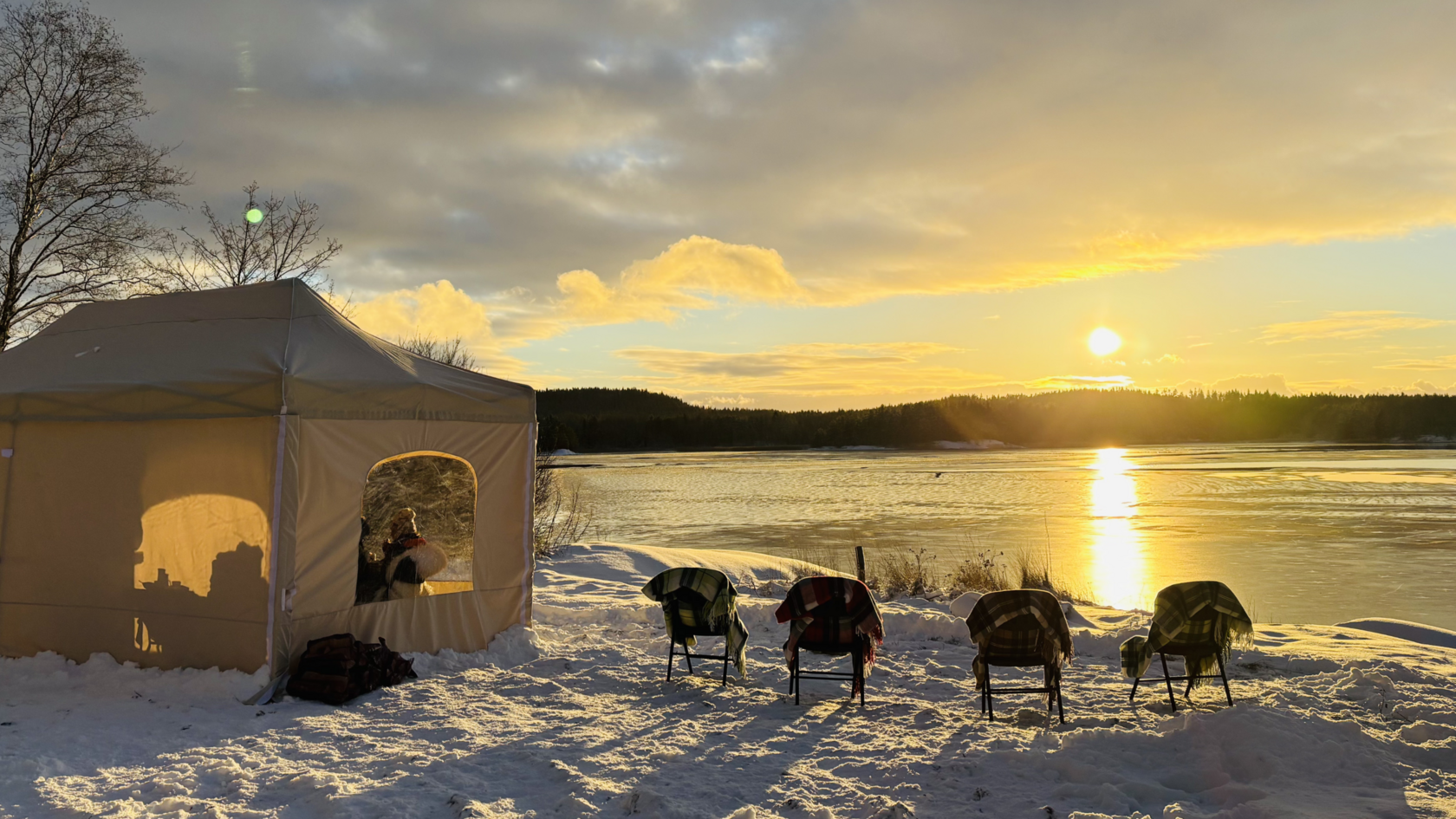 Планируя зимнее путешествие, мы всегда учитываем возможные изменения. На этот раз они коснулись двух ключевых активностей. Из-за погодных условий вертолёт на Кижи не смог вылететь. И подлёдная рыбалка не состоялась: тёплое начало зимы не дало льду окрепнуть на Ладоге.