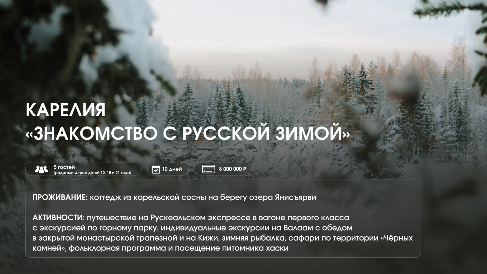 В зимние каникулы 2025–2026 мы реализовали 4 тура. 2 из них прошли в Великом Новгороде и Пскове — это выездные направления, которые мы тщательно проинспектировали, прежде чем составлять там премиальные программы. Ещё 2 тура состоялись в Карелии — нашем флагманском регионе.